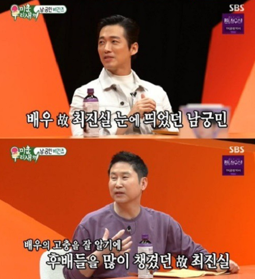 이어 MC 신동엽이 도움을 준 선배의 이름을 물었고 남궁민은 “그 선배는 고(故) 최진실”이라며 “단역시절, 차도 없고 택시 탈 돈도 없어서 차를 얻어 타기도 했다. 제가 매니저도 없고 아무것도 없으니까 많이 안쓰러우셨던 것 같다”고 고백했다.