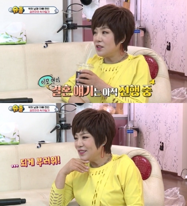 이날 김연자는 7년 째 연애 중인 남자친구를 언급하며 "결혼 얘기를 하고 있다. 아직 진행 중이다"라고 조심스럽게 말 문을 열었다.
